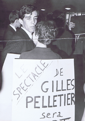 Gisèle Desgens en femme sandwich.