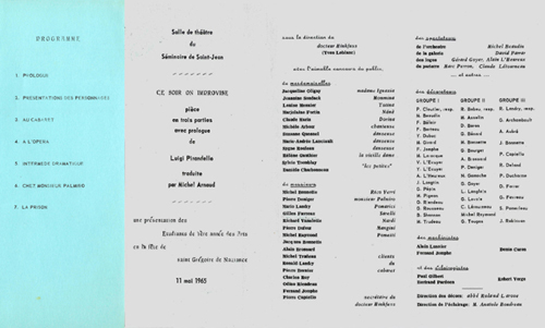 Quant à la personne dont on ne voit que les cheveux, à droite de Marjolaine Fortin, ce devrait être Claude Marin (qui interprétait une des trois sœurs avec Louise Messier et Marjolaine Fortin). Mais je n’ai pas d’autre photo pour corroborer l’allure capillaire qu’on devine ici… Courriel de Gilles Favreau 3 mai 2012.