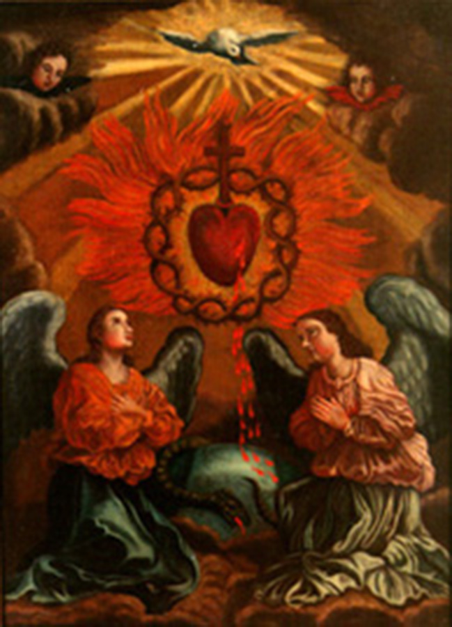 La dévotion au Sacré-Coeur fut profondément renouvelée à la fin du XIXe siècle, à l'époque où l'Institut fut dédié à cette pratique. On retrouve à l'endos d'une gravure de sainte Eulalie (catalogue no 32) la transcription manuscrite du long « Acte de consécration au Sacré-Coeur de Jésus » daté de 1875.