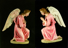 Les anges adorateurs forment toujours une paire et ils sont généralement situés de chaque côté du maître-autel. Comme leur nom l'indique, ils sont prosternés devant le Christ, c'est-à-dire devant le tabernacle pour rendre hommage aux saintes espèces. Leur rôle est purement contemplatif. Il existe des anges adorateurs debout et d'autres agenouillés, mais dans les deux cas un des anges a les mains croisées sur la poitrine et l'autre les mains jointes. Comme les anges porte-candélabres, nous les retrouvons sur la photographie de la cérémonie de la Fête-Dieu, datant de 1904. Nous pouvons donc affirmer qu'ils ont été achetés avant cette date.