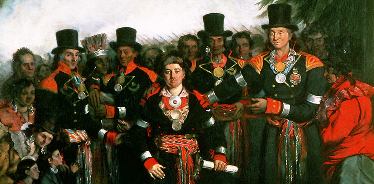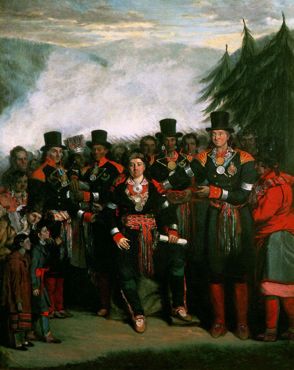Henry Daniel Thielcke, Présentation d'un chef nouvellement élu au Conseil de la tribu huronne de Lorette (détail), 1840, huile sur toile, 127 x 107 cm, Musée du Château Ramezay CRX978.41.1.
