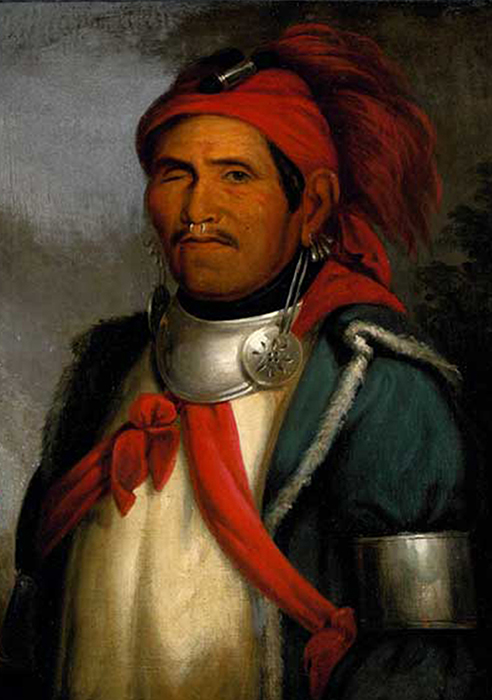 Tenskwatawa (Elskwatawa, d’abord nommé Lalawethika, aussi connu sous les noms de Shawnee Prophet et de Prophet 1775-1836), chef religieux et politique chaouanon. Il porte un anneau dans le nez, de lourds pendants d'oreilles, un hausse-col, de larges bracelets et brassards.