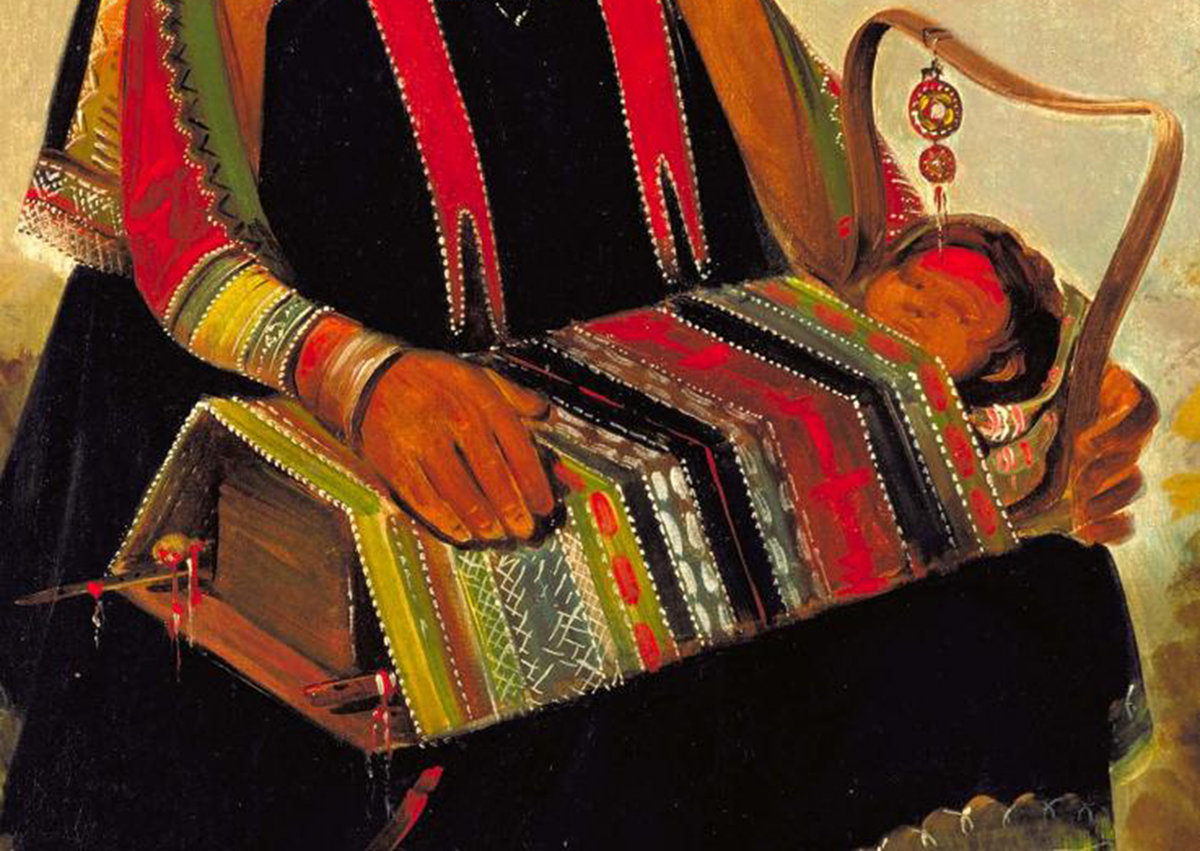 George Catlin, Jú-ah-kís-gaw, saulteuse avec un enfant dans un porte-bébé, 1835, huile sur toile, 73,7 x 60,9 cm, Gift of Mrs. Joseph Harrison, Jr., Washington, Smithsonian American Art Museum 1985.66.186. |