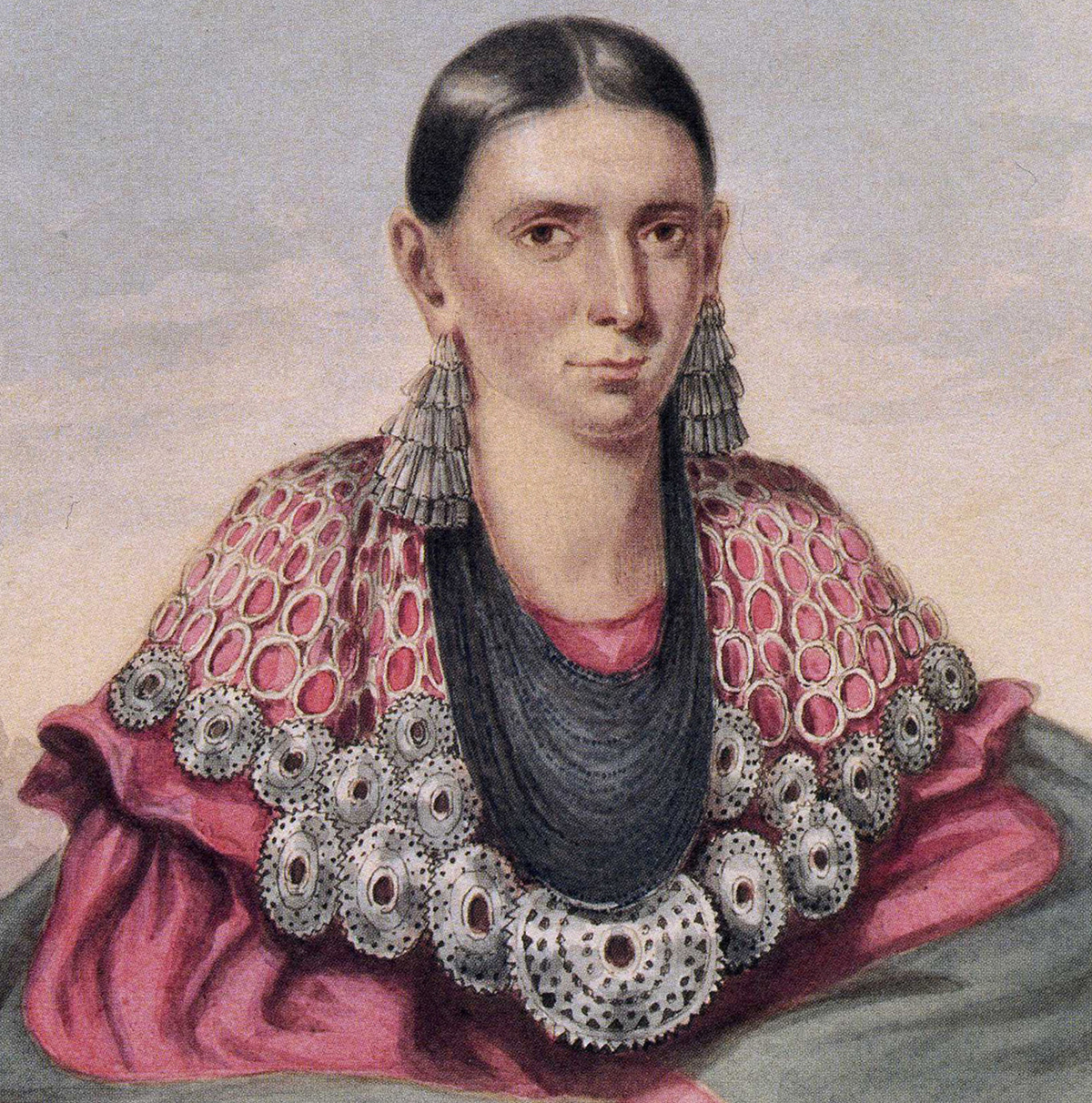 Une variété de documents et de portraits d'époque mettent en lumière l'utilisation des bijoux de traite : par le négociant montréalais James Woolrich à la fin du XVIIIe siècle ; mais surtout, par plusieurs personnalités des Premières Nations, de la fin du XVIIIe siècle à la fin du XIXe. |
