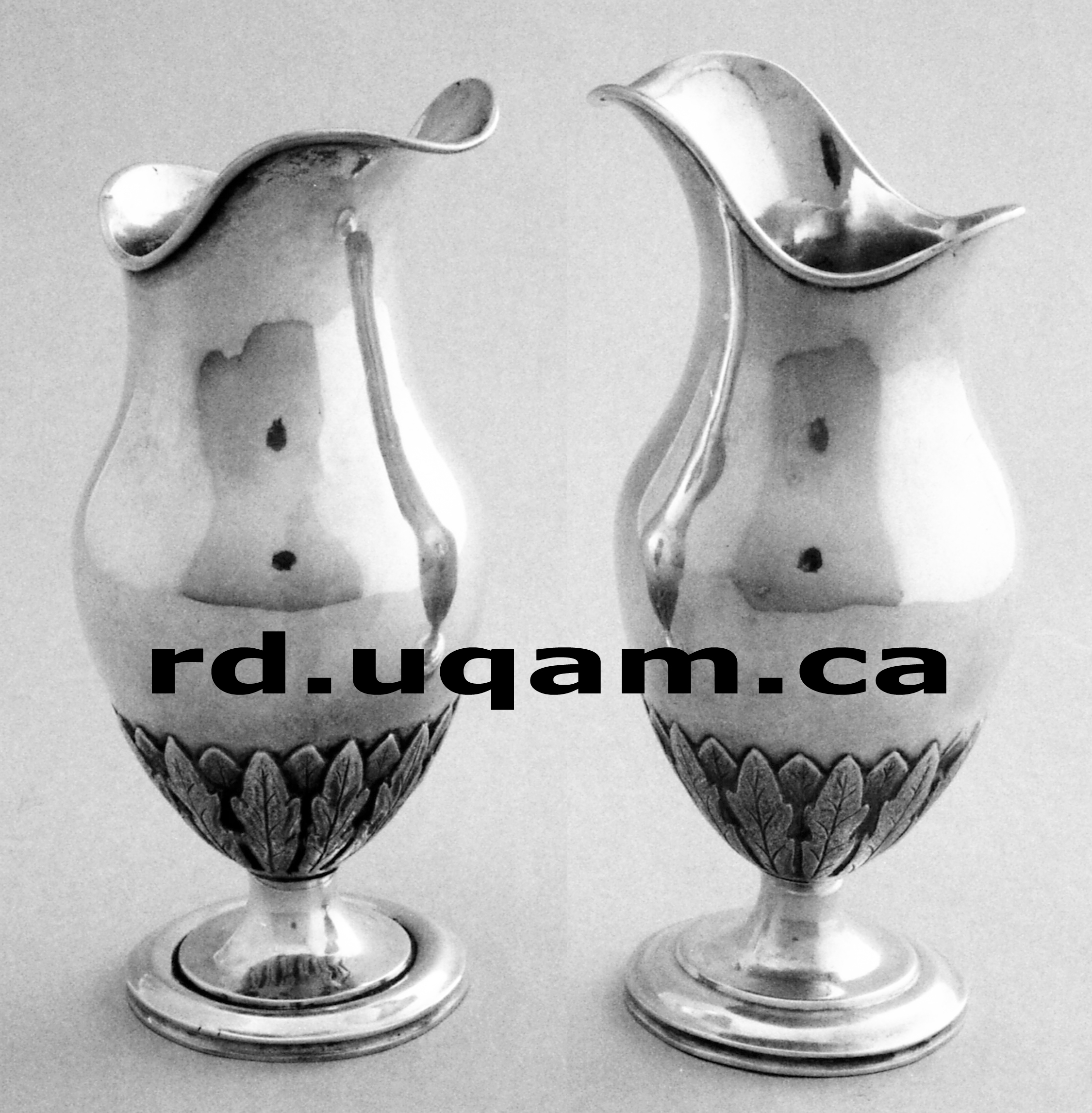 Cruickshank & Arnoldi firme active de 1784 à 1789, Burettes de Sainte-Anne-de-la-Pocatière, 15 cm, 1972 S. Breitman, Birks C550, photo RD. Probablement acquises en 1790 selon la mention aux livres de comptes : « 1790 une paire de Burettes d'argent 180# [IOA, Sainte-Anne-de-la Pocatière]. » |