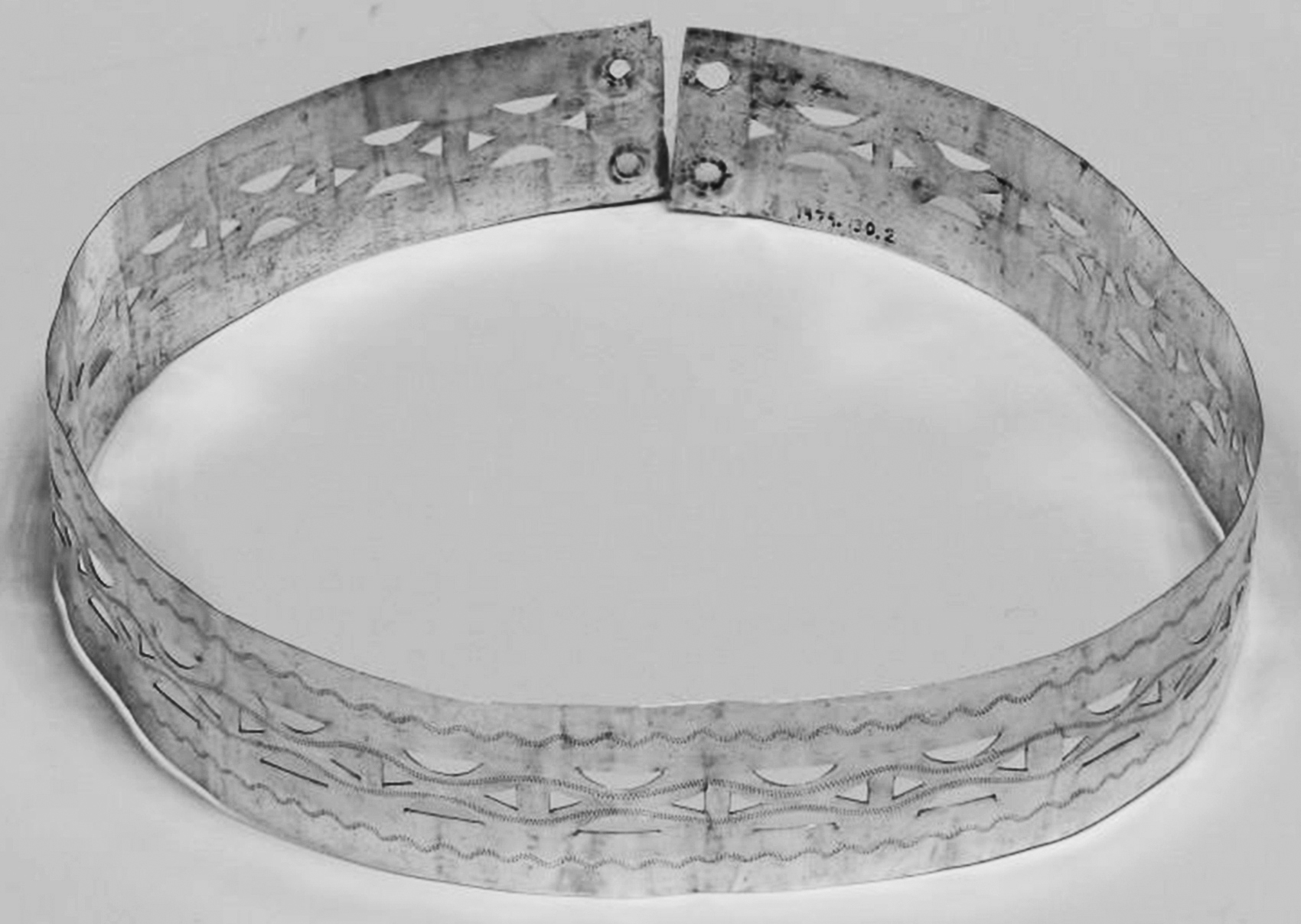 argent, 29,6 x 19,7 cm, National Museum of American Indian 14/5981 (Fredrickson 1980, p. 62 et 123).