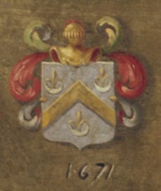 Jean Talon (1626-1694), né à Châlons-sur-Marne en Champagne, fut intendant de la Nouvelle-France de 1665 à 1668, puis de 1670 à 1672. Il voyage sur le même navire que le grand peintre français Claude François dit Frère Luc lors de sa venue en Nouvelle-France en 1670-1671. Ses armoiries se retrouvent, en bas à gauche, sur L'Assomption qu'il commandite pour l'ancienne chapelle des Récollets, aujourd'hui le monastère des Augustines de l'Hôpital général de Québec. « D'azur, au chevron d'argent, accompagné de trois épis montants d'or, soutenus chacun d'eux d'un croissant montant d'argent [Massicotte 1915, p. 58]. » Claude François dit frère Luc (1614-1685), L'Assomption, 1671, huile sur toile, 205,7 x 157,5 cm, Québec, chapelle du monastère des augustines de l'Hôpital général, photo CCQ. |