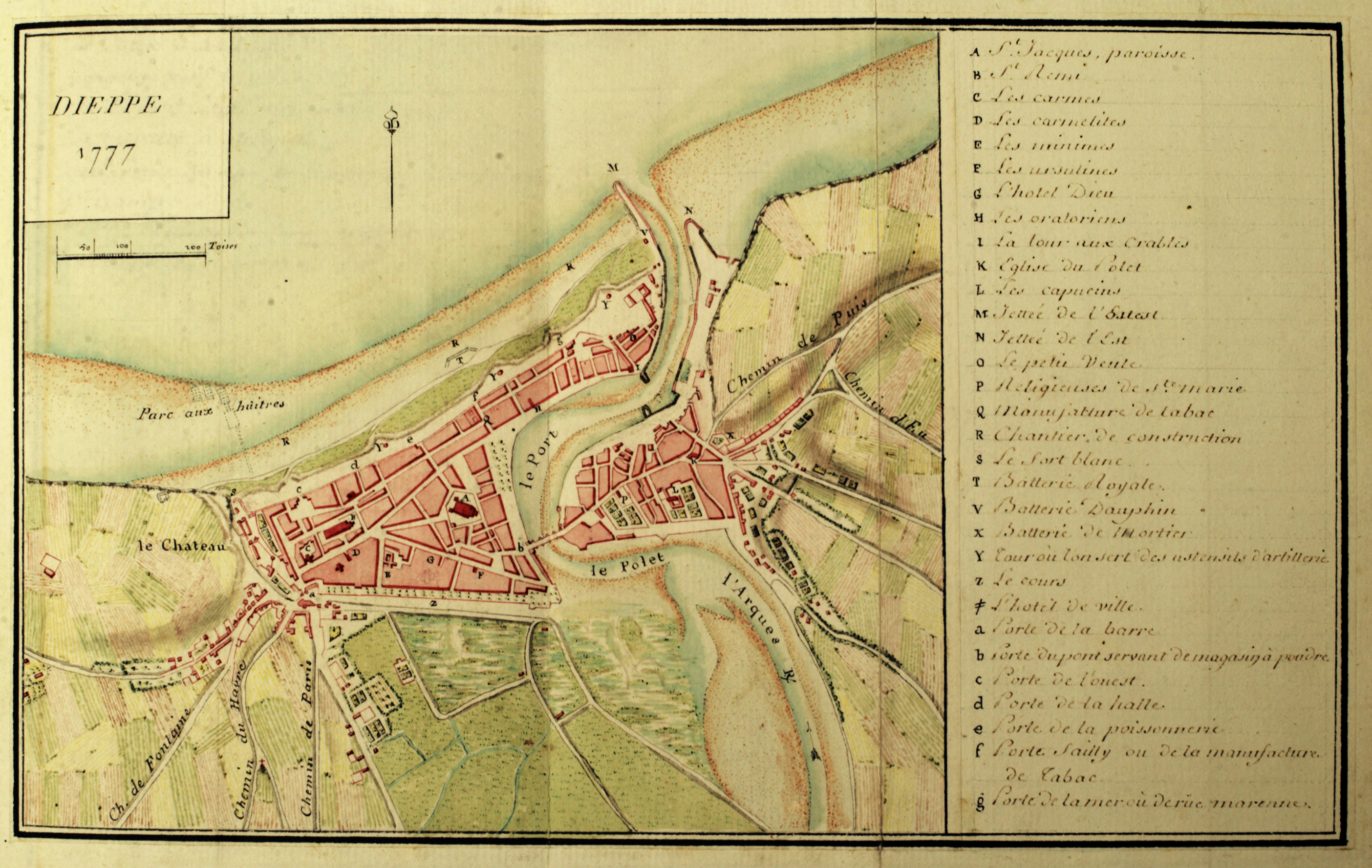 Dieppe 1777 (détail). Sources : 1 et 2.