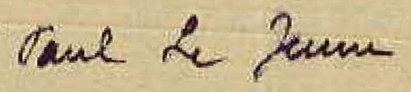 La graphie de « Paul Le Jeune » à l'encre noire sur le tapuscrit (détail ci-dessus)