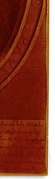 « Je me suis demandé si la photographie ne pourrait pas représenter une simple réutilisation d'une gravure de René Lochon et non l'oeuvre d'un nouveau graveur. Dans ce cas, il suffisait de remplacer l'encadré de la légende par un autre. Sur votre reproduction, je remarque que les deux grandes droites du rectangle ne sont pas exactement parallèles : l'effet d'optique qui courbe la droite du haut à cause de l'ovale qui s'y appuie est vraiment légèrement courbée. Mais vous avez probablement déjà écarté cette possibilité [Collaboration de Guy Laflèche]. »