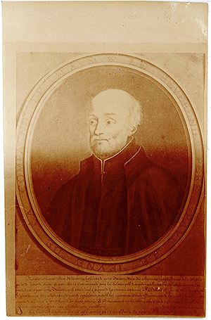 Pourrait-elle avoir fait partie de la fabuleuse collection des 4 200 gravures des portraits des jésuites ? L'introduction de Hamy 1893 démontre l'ampleur et le sérieux de ses recherches méthodiques et documentées pour la constitution de sa galerie de 400 portraits de jésuites. On y apprend que l'idée de former une Galerie illustrée de la Compagnie de Jésus date du XVIe siècle, dès la formation de l'ordre. Mais ces richesses sont dispersées après son abolition en 1773. Au début du XIXe on travaille à réunir des estampes. La collection de Boulogne-sur-Mer, commencée en 1862, « se compose non seulement des 2,200 gravures, lithographies ou dessins donnés au collège Notre-Dame, en 1875, mais encore d'environ 2,000 autres pièces acquises depuis lors. »