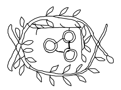 gravure montée sur une autre feuille de couleur similaire dont la bordure apparente a été colorée en rouge).