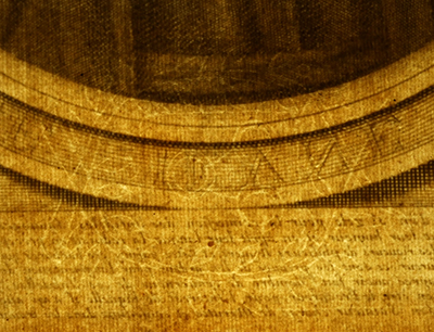 Une superposition des images en alignant précisément les deux coins gravés, en haut à gauche et à droite, permet de constater des distorsions. Premièrement à cause de la découpe de la gravure qui est plus serrée sur l'exemplaire de la CStM. Comme il s'agit de deux photographies, les angles de prise de vue peuvent également provoquer des distorsions expliquant que la hauteur des images n'est plus à l'échelle, ni l'orientation. Des numérisations haute résolution des deux images permettraient probablement d'éliminer ces distorsions photographiques. La comparaison des textes montre cependant qu'ils sont identiques. Il s'agit donc probablement du même état gravé. Exemplaire CStM par dessus celui OBAC, Voir détail agrandi du bas sur l'image ci-dessous... |