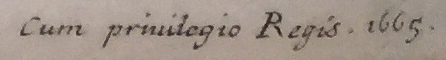Cette longue légende est donc identique sur les exemplaires de 1665 Lochon OBAC et 1665 Lochon CStM, sauf que cette dernière a été rognée plus près du « qui » terminant la première ligne du texte. Les signatures sont également identiques, sauf qu'il manque le jambage inférieur du « f ».