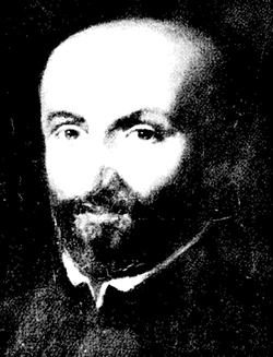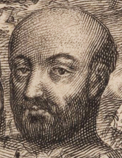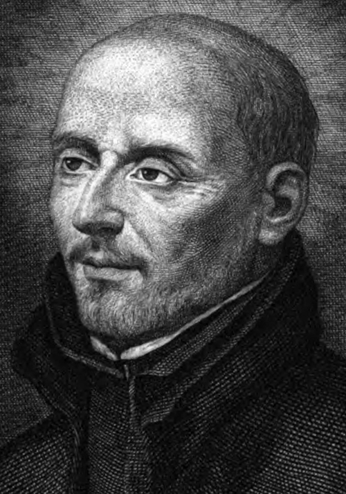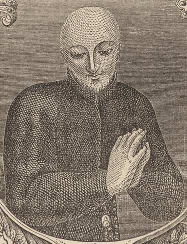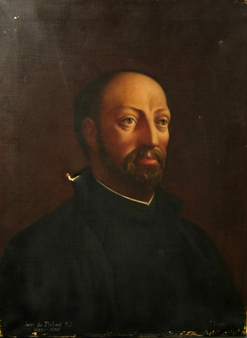 « The portrait painted in 1573 by Alonso Sanchez Coello, court painter to Philip II, was formerly in Madrid, Casa Profesa (destroyed 1931). » Henneberg 1967.06, note 6 et fig. 4, repris de Hornedo 1956, détail de l'image retouchée et améliorée. |