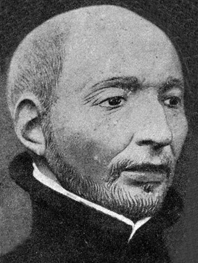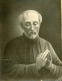 | La confusion iconographique est encore poussée un cran plus loin, en 1905, dans ce portrait par Ferland qui représente supposément Jogues alors qu'il participe davantage des conventions habituellement utilisées pour Brébeuf ! | |||