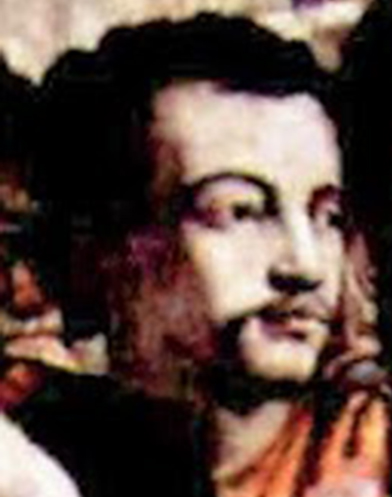 Ce visage ne peut pas être assimilé à celui d'un homme de 47 ans. Sa présence à cet endroit interrompt la fluidité de la composition en focalisant l'attention. Cet inconnu pourrait-il être un autoportrait du jeune peintre ? Avec des yeux au regard direct et intense ! Fervent disciple des enseignements de Loyola, il aurait pu s'habiller en noir par mimétisme ou selon la mode masculine dans ses autres portraits d'hommes. Il est alors âgé d'environ 28 ans, ce qui est compatible avec l'âge apparent de cet inconnu. Jeune artiste en quête de reconnaissance, il ne serait pas étonnant qu'il porte, tel un fanion, une écharpe ostentatoire, d'apparence négligée voire fantasque, en rappel et prolongement du grand voile maniéré et de même couleur autour de « son » Jean-Baptiste qu'il côtoie intimement, tant par cette proximité physique que pour l'avoir peint en s'intéressant à son message messianique. |